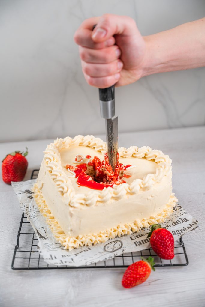 Entdecke die süße Verbindung von Popkultur und Patisserie mit dem Rezept für den blutigen „Blank Space“ Cake, inspiriert von Taylor Swifts gleichnamigem Musikvideo.